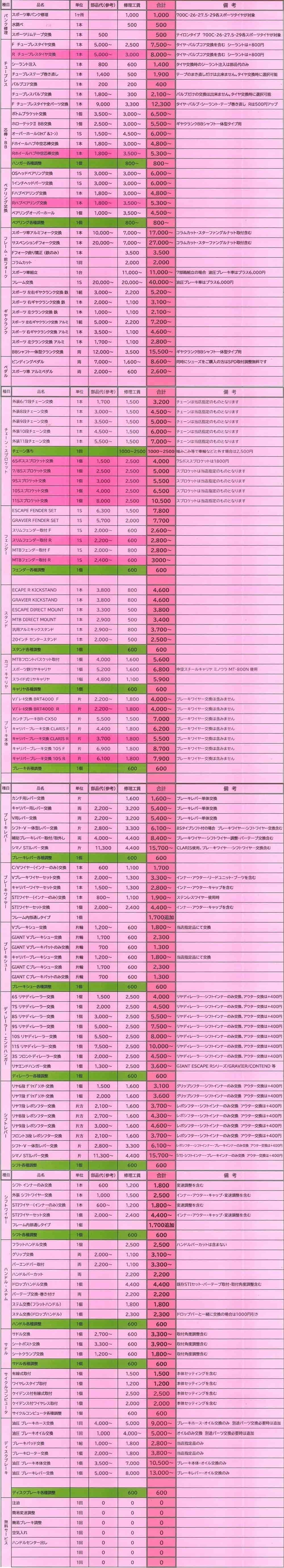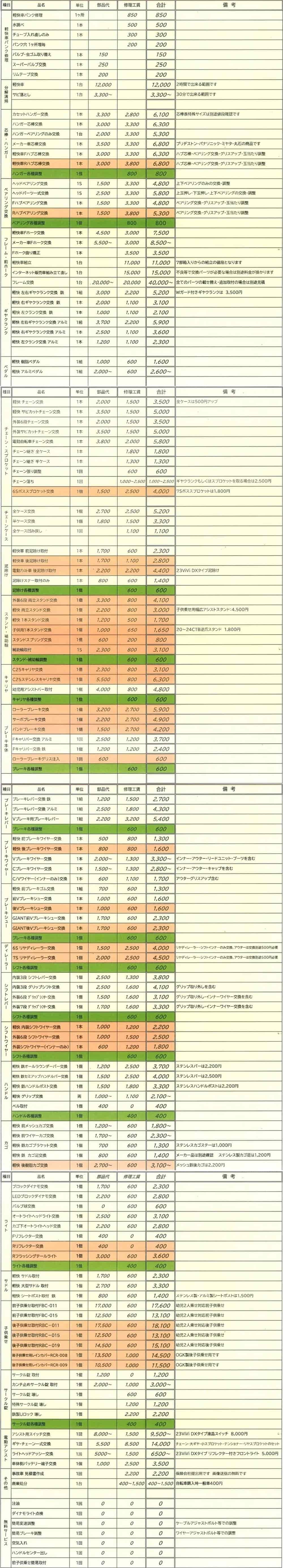 工賃 ¥1,500 部品代 ¥2,000 ~ 合計 ¥3,500 ~ |